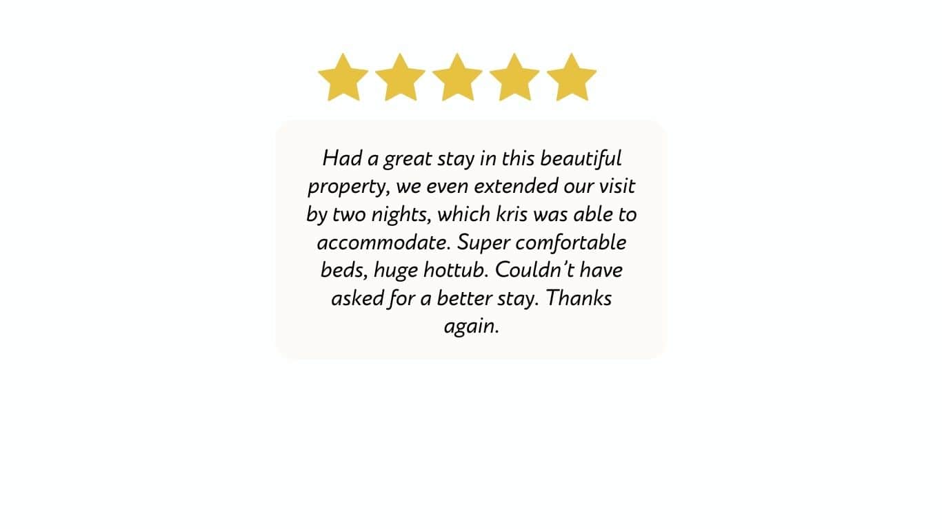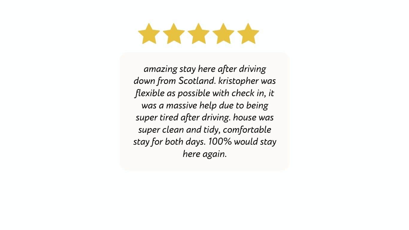 When you book directly with us, Northern Staycations - you’ll always receive the best available price, with no third-party fees or hidden costs. Booking direct also gives you priority support, flexible communication, and exclusive access to offers not available on platforms like airbnb and booking.com, where we proudly hold 5-star reviews and Superhost status.